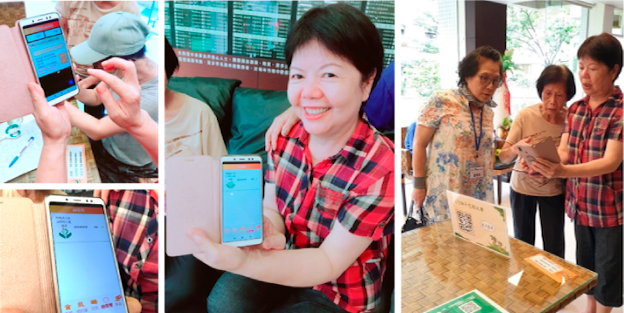 愛心志工掃描QR-Code進行簽到、退,並在活動結束後獲得生平第一枚時間幣