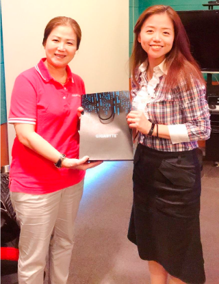 技嘉教育基金會周麗華執行長(左)與優時間銀行雲林倩如總經理(右)會後合影