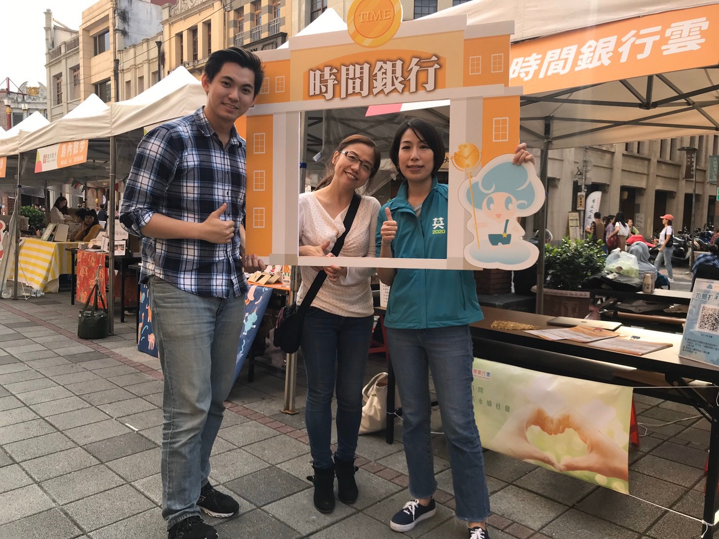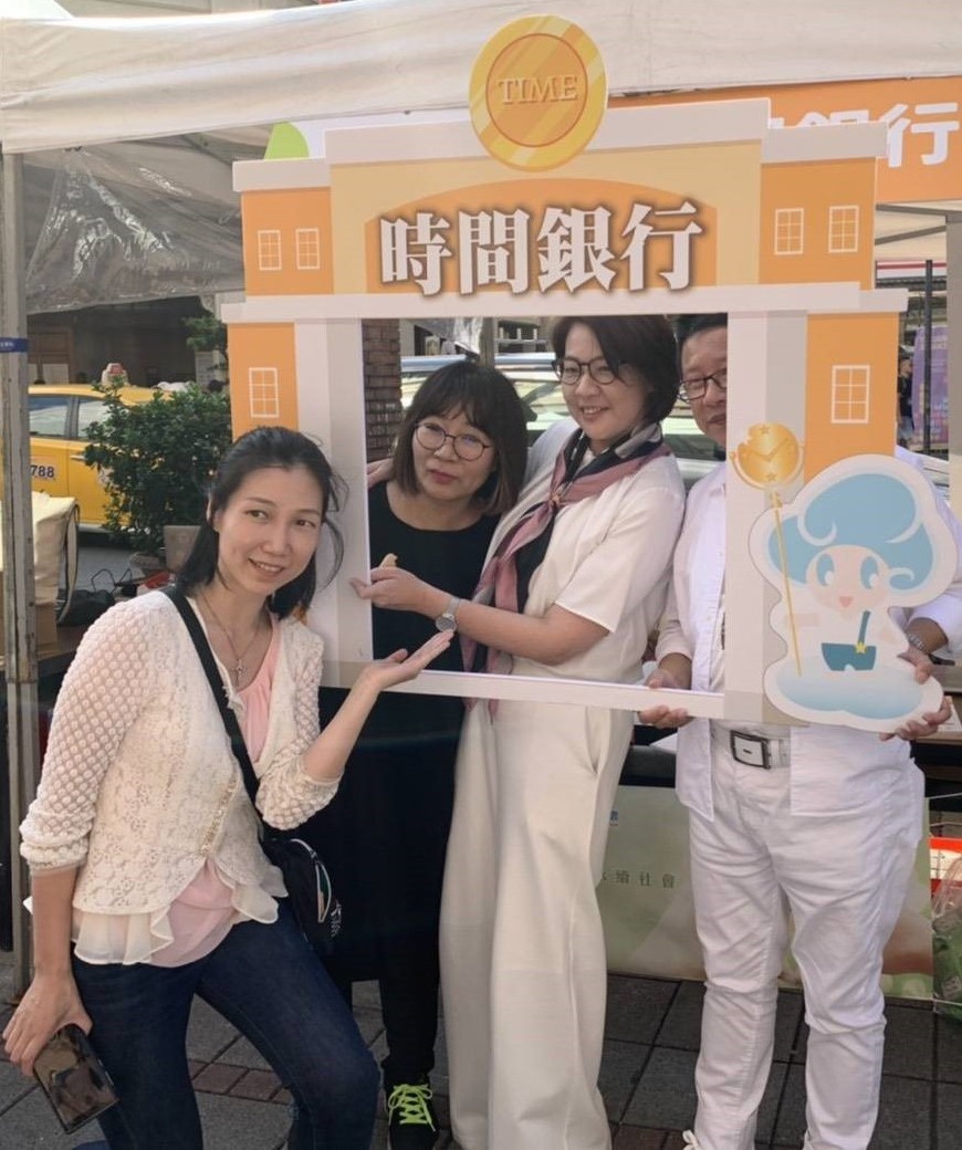 黃珊珊副市長(右二)與產發局林崇傑局長(右一)特地到優時間銀行雲展位向團隊表達支持。
